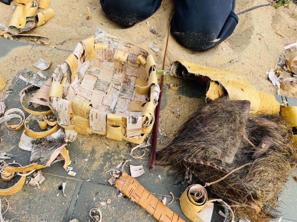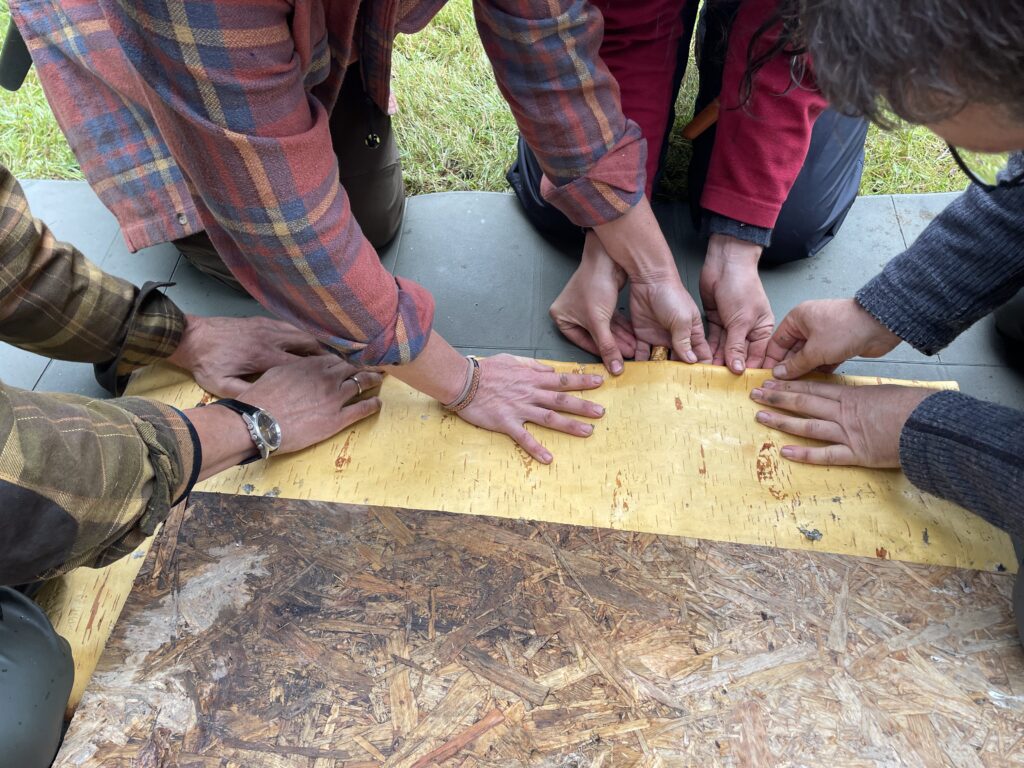 - wie man Rinde bearbeitet, achtsam schält, schneidet, faltet und vernäht